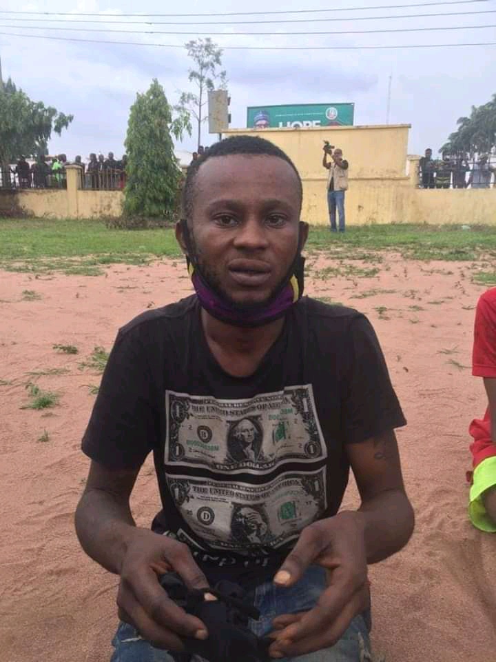 The man in the picture whose identity is not yet revealed has been paraded by the police as a kidnapper in Imo state.